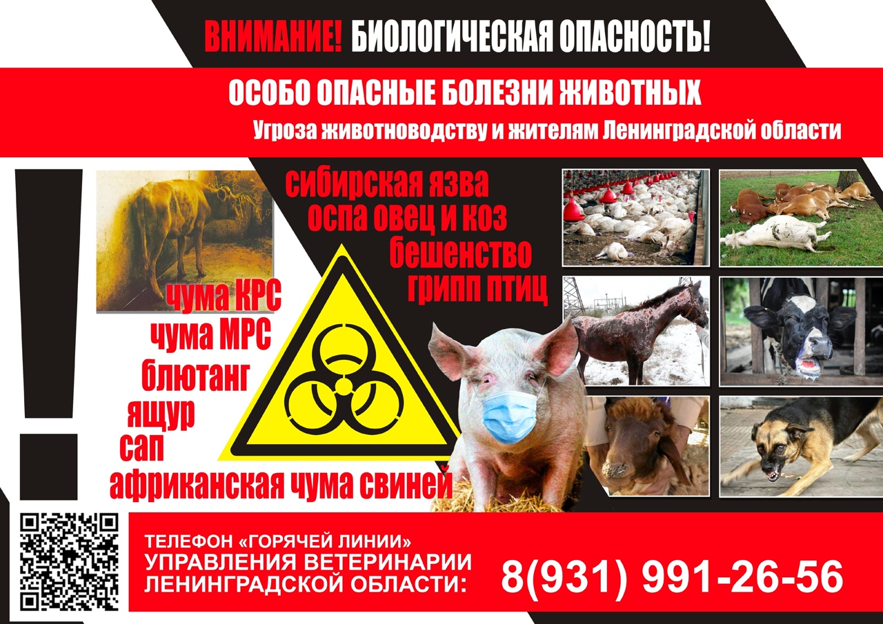 Особо опасные болезни животных несут угрозу животноводству и жителям Ленинградской области. Предотвращение заноса и возникновения инфекционных болезней на территории региона, обеспечение безопасности животноводческой продукции и создание условий для развития животноводства являются главными задачами государственной ветеринарной службы Ленинградской области.