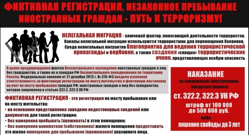 УМВД России «Гатчинское» напоминает, что фиктивная регистрация и незаконное пребывание иностранных граждан на территории России - путь к терроризму