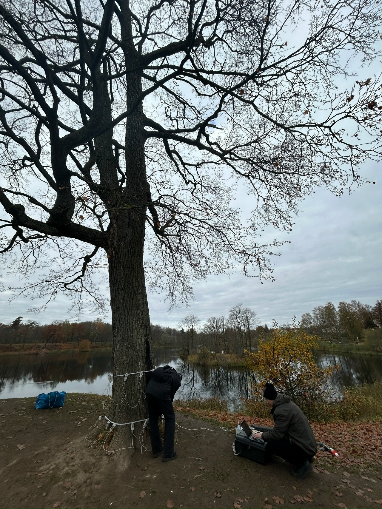 Привлеченные Парковым агентством специалисты вооружились современным оборудованием, которое позволяет довольно точно оценить состояние деревьев. Датчики вокруг дерева передают данные о внутреннем состоянии древесины, сообщают о наличии и размерах пустот и гнилей. Это томографическое обследование.