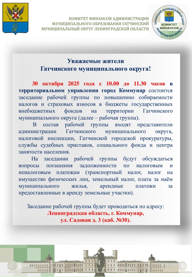 30 октября 2025 года - в территориальном управлении г.Коммунар состоится заседание рабочей группы
