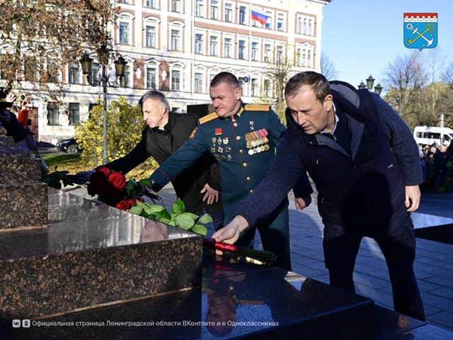 Александр Дрозденко вместе с жителями возложил цветы к стеле «Город воинской славы» в честь подвига защитников Отечества, а также вручил государственные награды семьям погибших участников СВО.