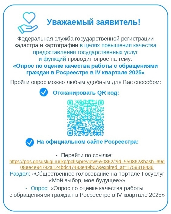 Опрос по оценке качества работы с обращениями граждан в Росреестре в IV квартале 2025 году: