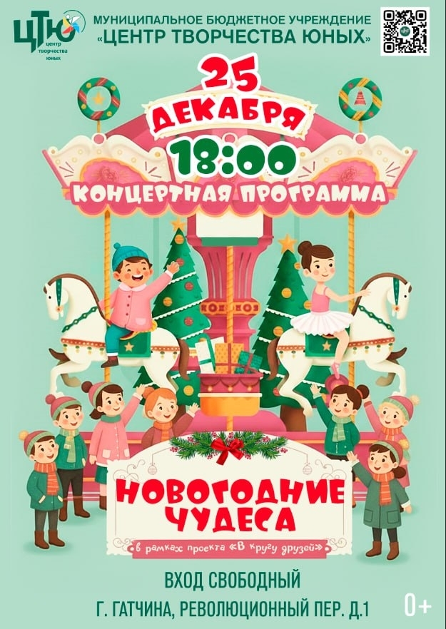 25 декабря в 18:00 в МБУ «ЦТЮ» состоится праздничная концертная программа «Новогодние чудеса», проходящая в рамках проекта «В кругу друзей».
