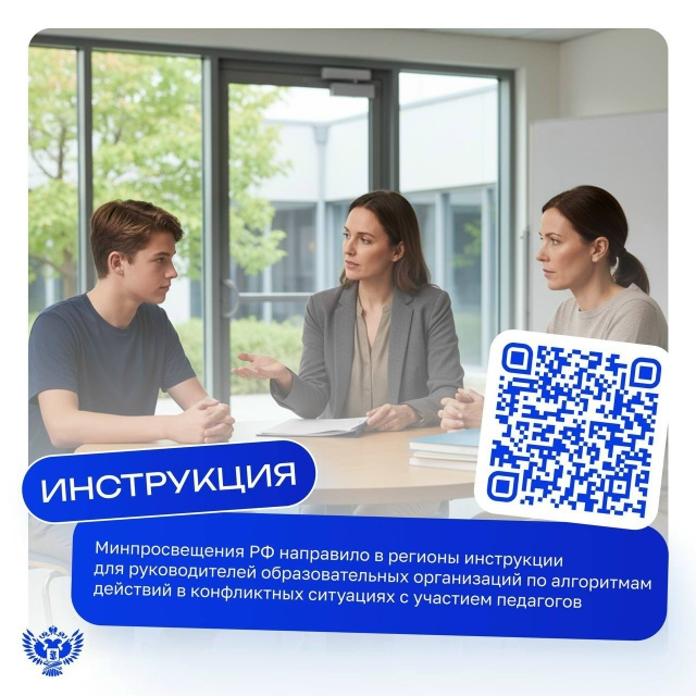 Министерство просвещения Российской Федерации направило в регионы инструкции для руководителей образовательных организаций по действиям в конфликтных ситуациях у педагога. Документ был одобрен на заседании Совета Минпросвещения России по защите профессиональной чести и достоинства педагогических работников.