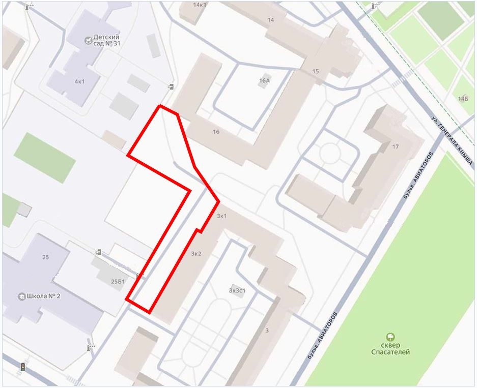 Разрабатывается проект благоустройства территории между домами №3 корп.1, №3 корп.2 на б-р Авиаторов, №16 на ул. Генерала Кныша, детским садом №31 и Гатчинской СОШ №2.